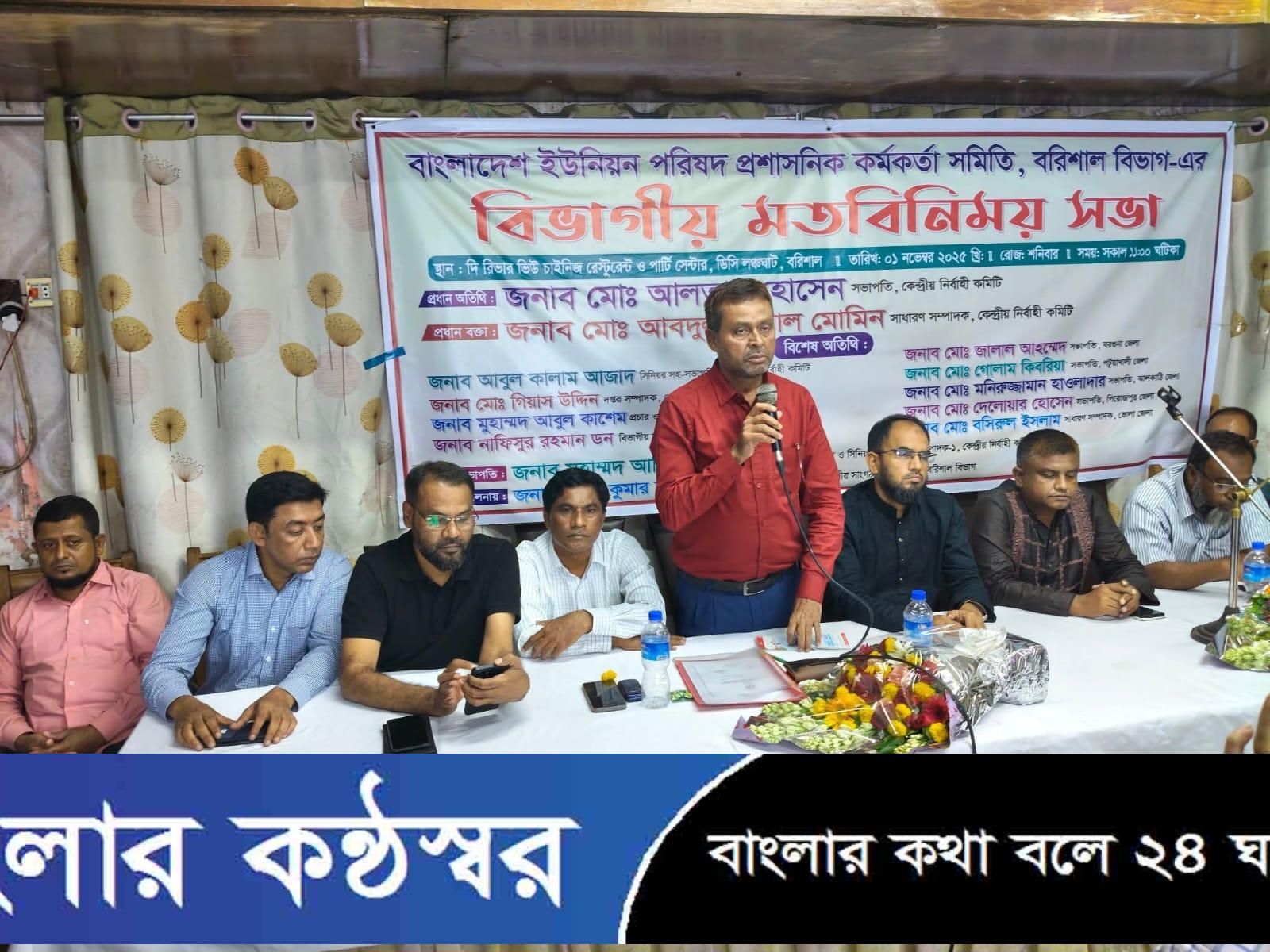 বাংলাদেশ ইউনিয়ন পরিষদ প্রশাসনিক কর্মকর্তা সমিতির বরিশাল বিভাগীয় সমিতির মতবিনিময় সভা অনুষ্ঠিত হয়েছে। শনিবার বরিমালের একটি রেস্টুরেন্টে এ মতবিনিময় সভা অনুষ্ঠিত হয়।