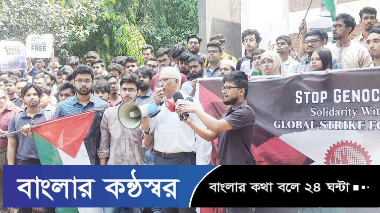 এতে সংহতি জানিয়েছেন শিক্ষক, কর্মকর্তা-কর্মচারীসহ একাধিক রাজনৈতিক ছাত্র সংগঠনসহ সাধারণ মানুষ। এদিন বেলা সাড়ে ১১টায় বুয়েটের কেন্দ্রীয় শহীদ মিনারের সামনে মানববন্ধন করে বুয়েটের শিক্ষার্থীরা। এতে একাত্মতা পোষণ করে বেশ কয়েকজন শিক্ষক অংশগ্রহণ করেন। এ সময় আন্দোলনকারীরা ‘ফ্রম দা রিভার টু দা সি প্যালেস্টাইন উইল বি ফ্রি’, ‘ইস্ট টু ওয়েস্ট নো ফ্লো টু জায়োনিস্ট’, ‘ফিলিস্তিন মুক্তি পাক, ইসরায়েল নিপাত যাক’; ‘ইনকিলাব ইনকিলাব, আল আকসা জিন্দাবাদ’ ইত্যাদি স্লোগান দেন।