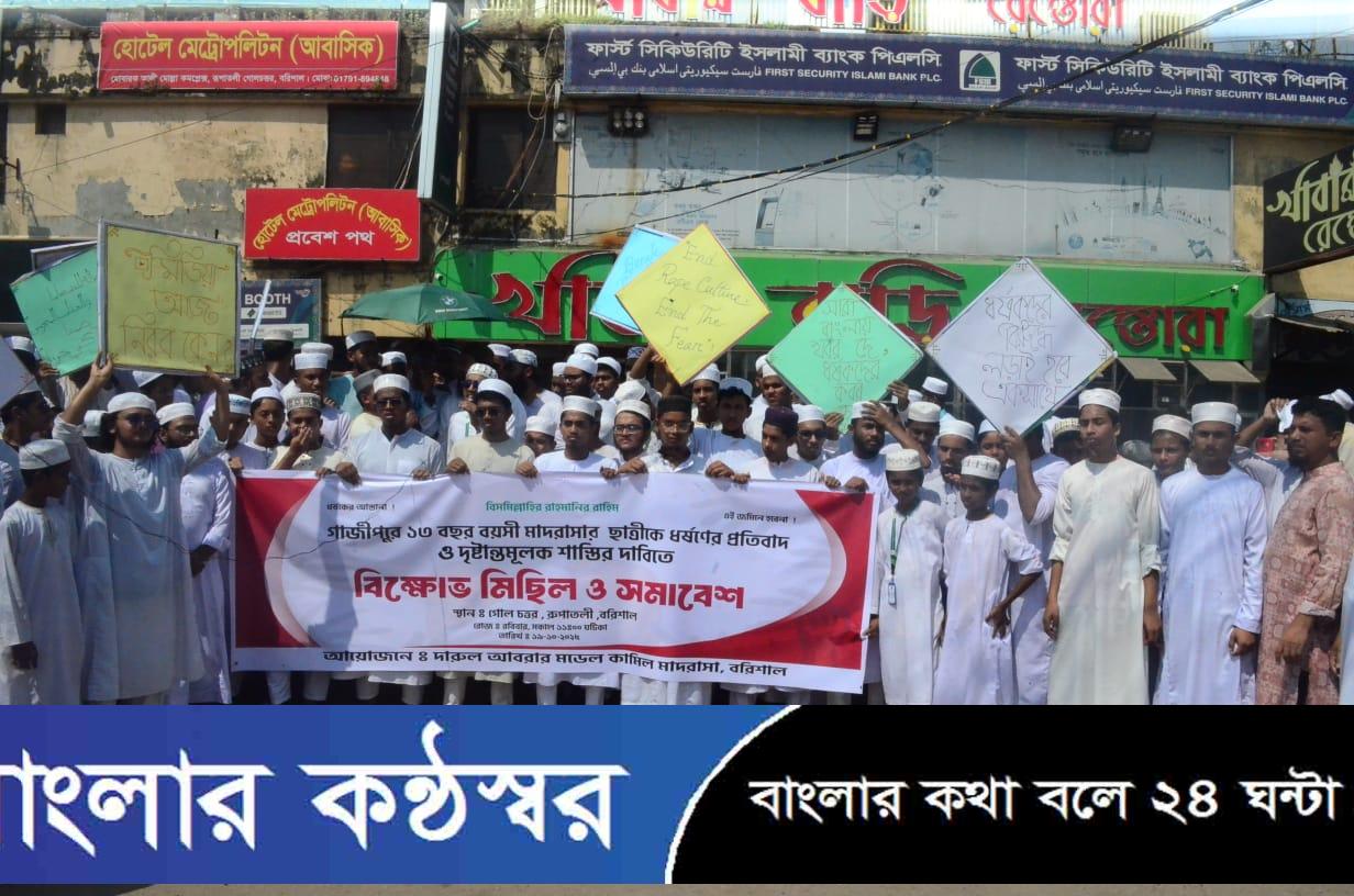 গাজীপুরে মাদরাসাছাত্রী ধর্ষণের প্রতিবাদ/ বরিশালে দারুল আবরার মডেল কামিল মাদরাসা শিক্ষার্থীদের বিক্ষোভ - বাংলার কন্ঠস্বর ।। Banglar Konthosor