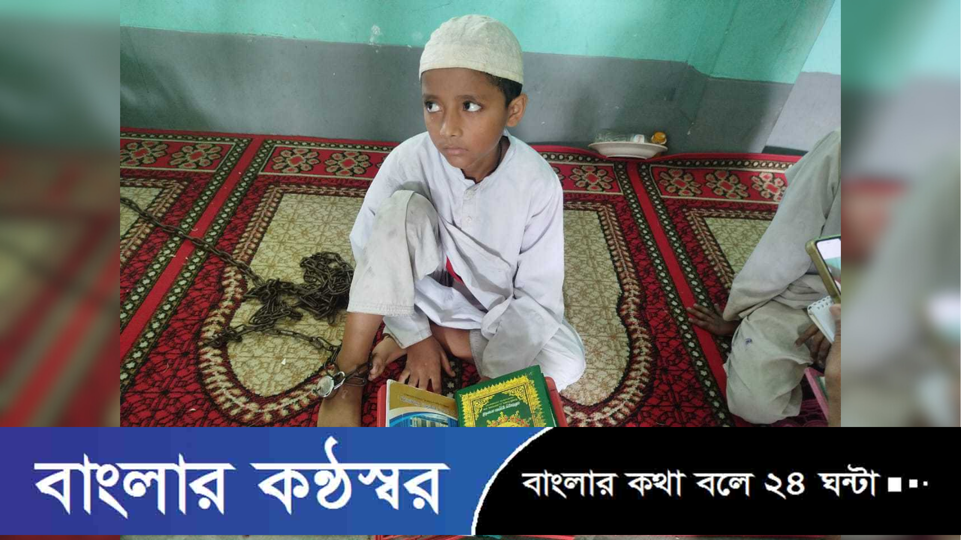 মাদ্রাসার নাজেরা শাখার শিক্ষক মো. ইয়াহিয়া বলেন, ‘শিশুটি দুই দফা মাদ্রাসা থেকে পালিয়ে বাড়ি যায়। পরে তার বড় ভাই আবুবকর মল্লিক শিকল ও তালা এনে দিয়ে যান। তার কথামতোই শিশুটির এক পায়ে শিকল দিয়ে রাখা হয়েছিল।’