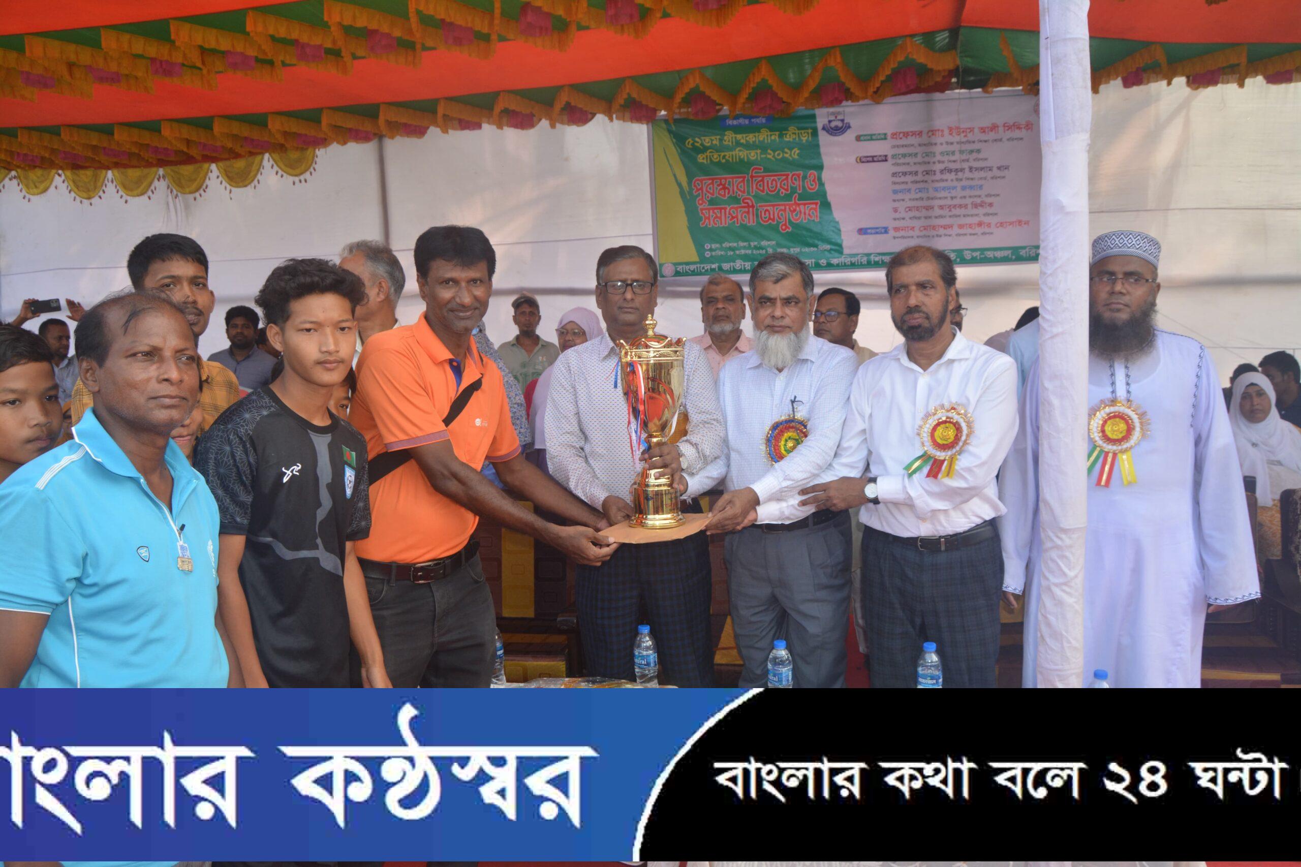 উৎসবমুখর পরিবেশে অনুষ্ঠিত হলো ৫২তম গ্রীষ্মকালীন ক্রীড়া প্রতিযোগিতার সমাপনী ও পুরস্কার বিতরণ অনুষ্ঠান। শুক্রবার (১৮ অক্টোবর) বরিশালে আয়োজিত এ অনুষ্ঠানে বিজয়ীদের হাতে পুরস্কার তুলে দেন বরিশাল মাধ্যমিক ও উচ্চ মাধ্যমিক শিক্ষাবোর্ডের চেয়ারম্যান প্রফেসর ড. মোহাম্মদ ইউনুস আলী সিদ্দিকী।
