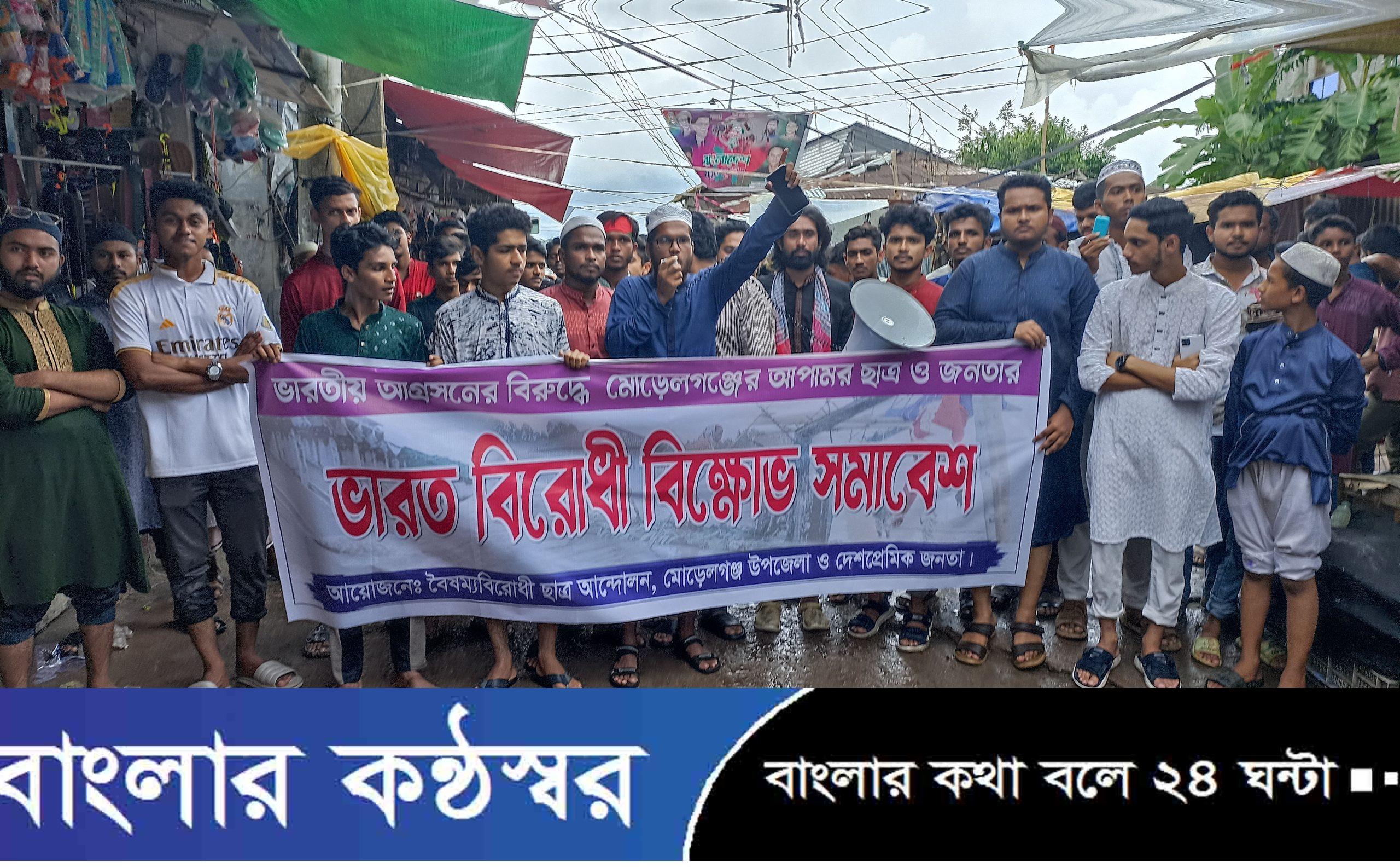 শুক্রবার বিকেলে আয়োজিত বৈষম্য বিরোধী ছাত্রজনতার ব্যানারে এ বিক্ষোভ মিছিলটি সরকারি সিরাজ উদ্দিন মেমোরিয়াল কলেজ সড়ক থেকে বের হয়ে শহরের বিভিন্ন সড়ক প্রদক্ষিণ শেষে বাজার চৌরাস্তা মোড়ে সমাবেশে বক্তৃতা করেন, বৈষম্য বিরোধী ছাত্র আন্দোলনের শিক্ষার্থী মো. নাজমুল হাসান তাজিম, মহিবুল ইসলাম অনি, সায়মন জিয়ন, মেহেদী হাসান রুবেল, মহিদুল খান, মেহেরাব আলম অপিসহ বিভিন্ন নেতৃবৃন্দ। সভা থেকে বক্তারা বলেন, ভারত থেকে বাঁধ খুলে দিয়ে এ পর্যন্ত তারা দেশের ১৩ জেলা পানিতে তলিয়ে দিয়েছে। ভারতীয় এ ধরণের আগ্রাসণ বন্ধের দাবি জানানো হয়। এ আগ্রাসণ বন্ধ না করলে ভারতের সাথে সকল কুটনৈতিক সম্পর্ক বিচ্ছেদ করার জন্য সরকারের প্রতি জোর দাবি জানানো হয়েছে সভা থেকে।