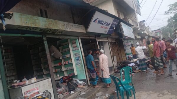কাজিরহাট বাজারে গভীর রাতে আগুনে পুড়ে গেল ৩ টি দোকান।