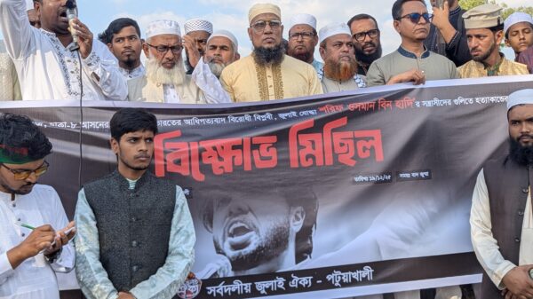 মোঃইয়াহিয়া শাকুর,পটুয়াখালী জেলা প্রতিনিধি: ইনকিলাব মঞ্চের মুখপাত্র শরীফ ওসমান হাদীর হত্যার সুষ্ঠু বিচার ও দোষীদের দৃষ্টান্তমূলক শাস্তির দাবিতে পটুয়াখালীতে বিক্ষোভ মিছিল ও সমাবেশ অনুষ্ঠিত হয়েছে। শুক্রবার জুমার নামাজ শেষে সর্বদলীয়
